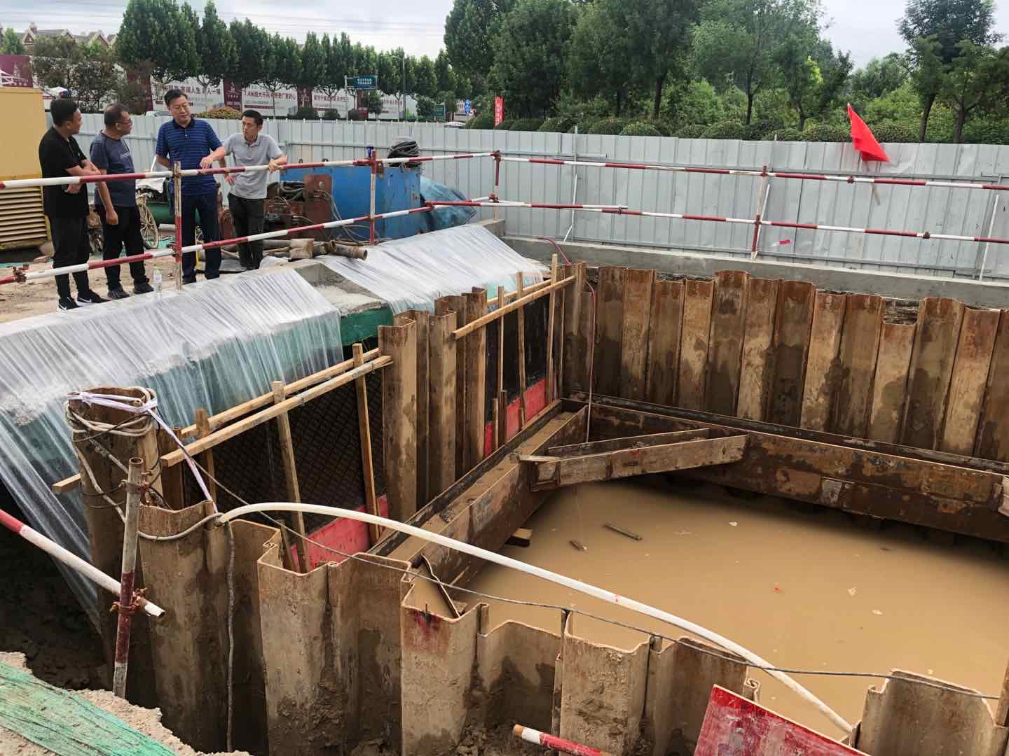 根據(jù)氣象部門暴雨紅色預(yù)警,濟寧地區(qū)未來一周還會有連續(xù)降雨。李聲播副書記指示各有關(guān)部門和工作人員務(wù)必做好工地積水的排水工作,完善施工作業(yè)面保護和溝槽的防汛措施,搶抓施工進度,確保施工安全,安排好防汛值班工作,做好管道周邊泥土的處理及施工坑道的恢復(fù)工作。切實加強對防汛工作的組織領(lǐng)導(dǎo),強化落實防汛責(zé)任制,組建防汛搶險隊伍,增強對突發(fā)事件的快速應(yīng)變能力,保證在緊要關(guān)頭拉得出、搶得上、守得住。同時狠抓汛前度汛設(shè)施隱患排查,積極做好入汛以來的各項準備工作,為項目安全度汛奠定堅實基礎(chǔ)。