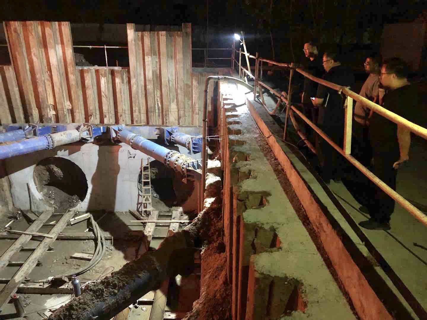 2020年8月24日晚,山東公用熱電集團(tuán)黨委副書記、濟(jì)寧四和供熱有限公司董事長李聲播帶領(lǐng)四和供熱公司班子成員,深入熱源替換項目工程6個標(biāo)段,檢查督導(dǎo)施工現(xiàn)場各項工作。并于25日凌晨,在南躍進(jìn)溝工地主持召開基坑支護(hù)、頂管作業(yè)專項施工安全現(xiàn)場調(diào)度會,工程項目相關(guān)單位負(fù)責(zé)人共同參會。